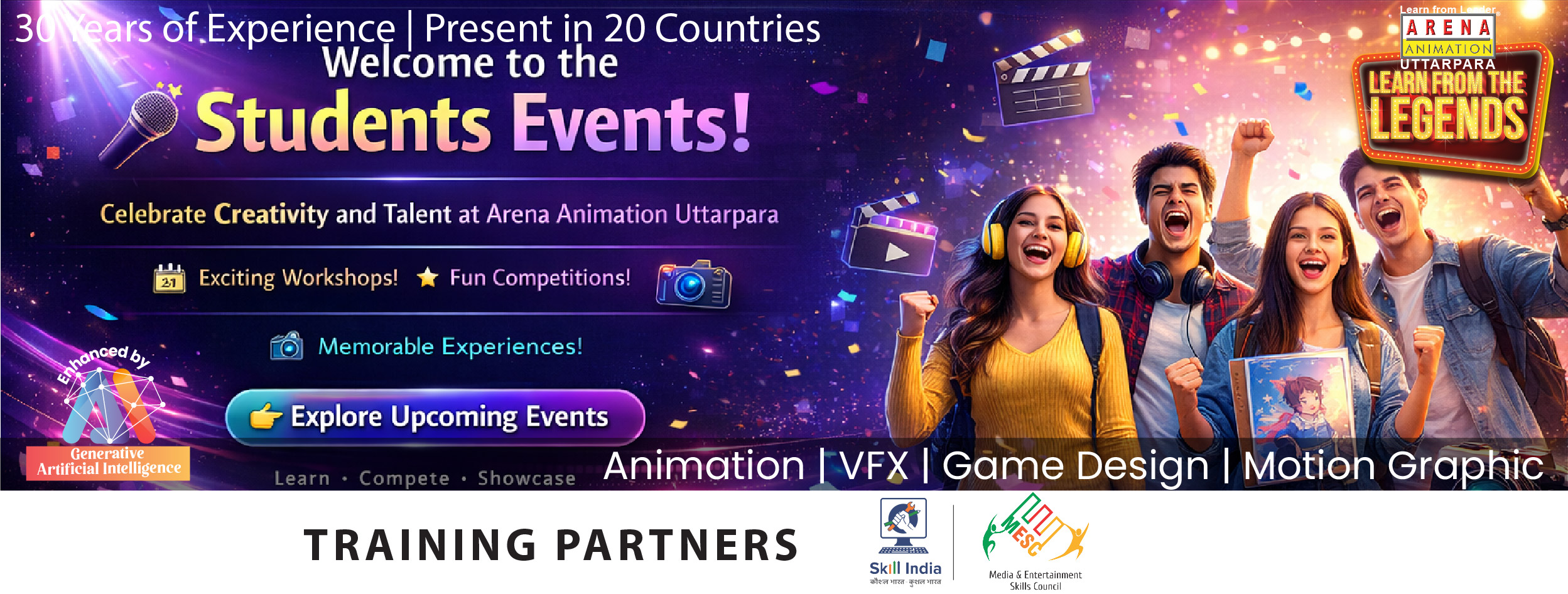 Hence, with these events, our students will get an opportunity to correct there mistake and learn to communicate with the industry experts. So, be a part of Arena Animation Uttarpara, Hooghly and take part in the events organized by us.