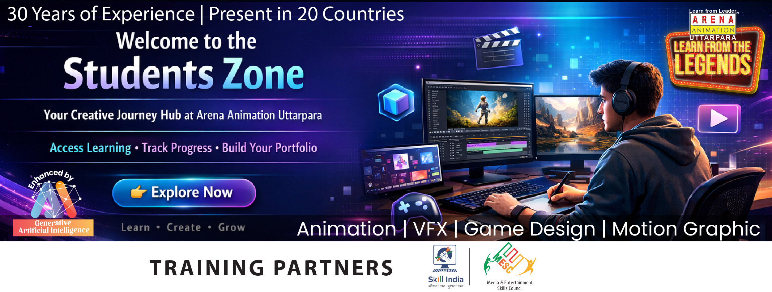 Arena Animation Uttarpara not only gives tecnical training, but also organise extar curriculumn activities like Creaive Art Competetion, Industrial Visit, Advance Seminar, Birthday Celebration, Picnic, etc for our students.